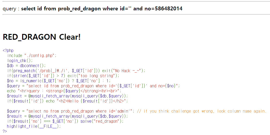 LOS (Lord of SQL injection) 문제 26번 red_dragon write-up 문제 26번 - red_dragon query : select id from prob_red_dragon where id='' and no=1 write-up/LOS write-up 2021.07.13