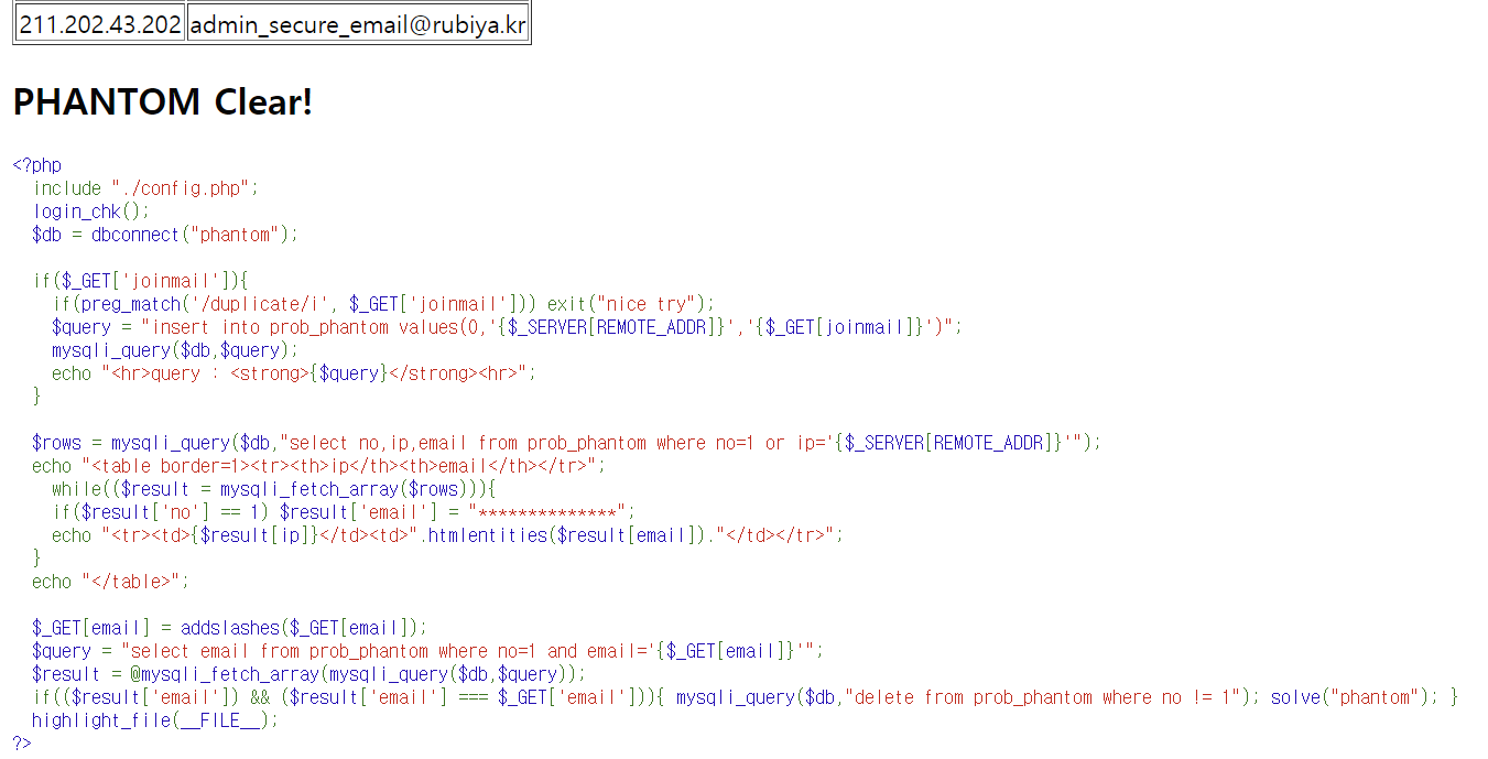 LOS (Lord of SQL injection) 문제 29번 phantom write-up 문제 29번 - phantom 이번엔 쿼리를 처음에 안띄워줬다. write-up/LOS write-up 2021.07.14