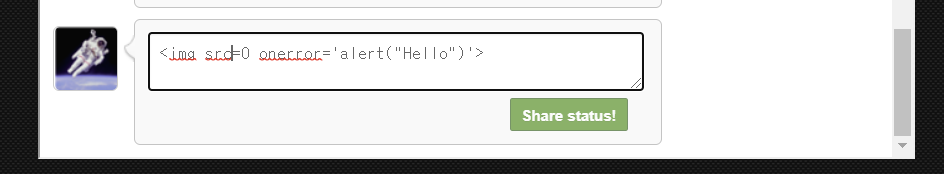 Note: the application saves your posts so if you sneak in code to execute the alert, this level will be solved every time you reload it.